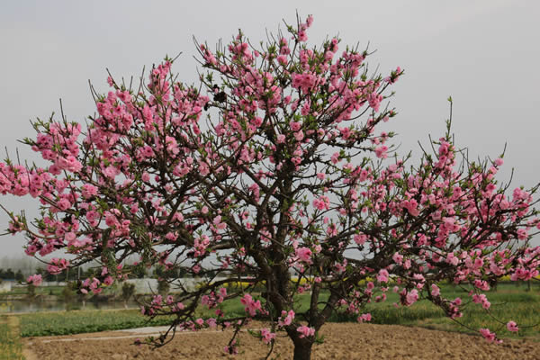 路边桃光、梨花、樱花开,田里油菜花飘香。