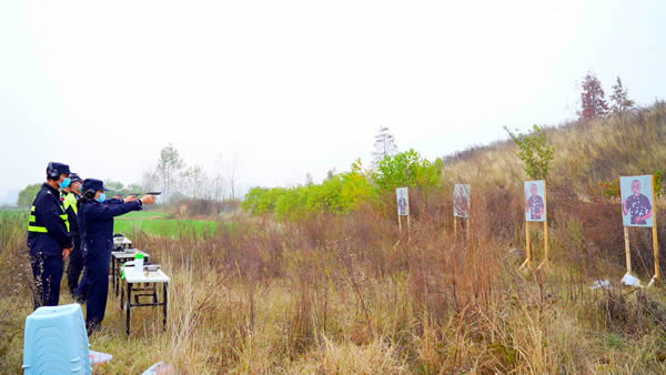 在射击训练测试现场,民警有条不紊地验枪、装弹,听到模拟突发危险状况的口令后,民警熟练地持枪戒备、出枪示警、语言警告,随着枪声不断响起,一颗颗子弹精准命中靶心。
